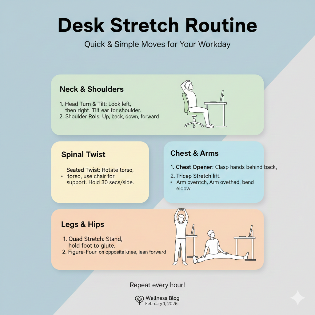 Standing Desks: If possible, switch to a sit-stand converter. The goal isn't to stand all day (which has its own set of issues), but to alternate frequently.